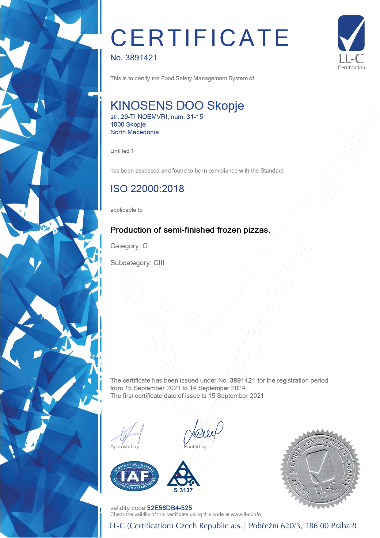 Работиме по HACCP и имаме имплементирано ISO 22000:2018